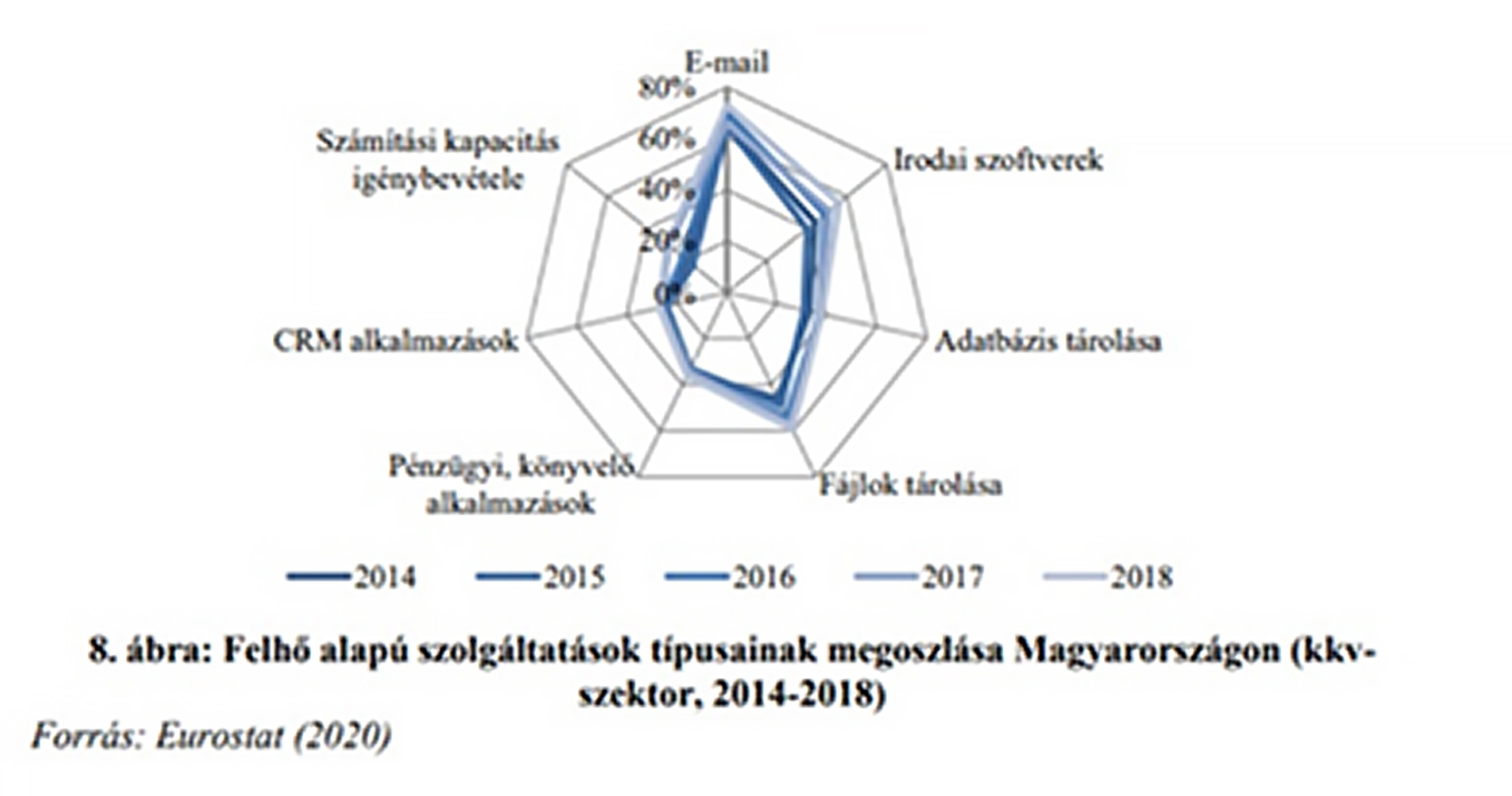 Az üzleti felhőmegoldások használata terén is komoly lemaradás mutatkozik a magyar kkv-szektorban, holott a digitális gazdaság fejlesztése körében egyre inkább látható, hogy a digitalizáció minden ágazatban versenyelőnyt tud generálni. Ennek ellenére a hazai kis- és középvállalkozások mindössze 12%-a vesz igénybe felhőalapú üzleti szolgáltatásokat, miközben az uniós átlag 20% felett van.