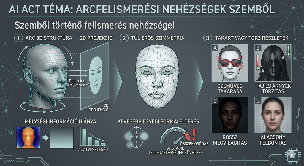 - Takart vagy torz részletek: Szemüveg, haj, árnyék, rossz megvilágítás, alacsony felbontás – mind rontja a pontosságot.