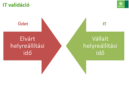 És ami a legfontosabb: ezeket nem az IT dönti el, hanem a vezetőség – mert ez üzleti döntés, nem pedig technikai. Az IT megmondja, mennyibe kerül az adott RTO/RPO elérése (fejlesztési – beruházási költség), a vezetőség pedig eldönti, mekkora kockázatot vállal.
