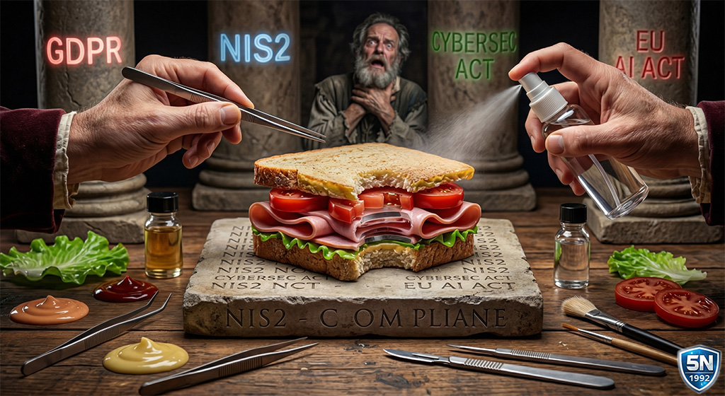2026-ra az Európai Unió összeállította a digitális „menüt”. A GDPR, a NIS2, az EU AI Act és a Cybersecurity Act nem négy külön fogás, hanem egyetlen, többrétegű szendvics-kényszerpálya, amit minden érintett szervezetnek le kell erőltetnie a torkán. Ez a kibervédelmi architektúra (adatvédelem, kiberbiztonság, mesterséges intelligencia, tanúsítás) egyetlen integrált kockázatkezelési és megfelelési rendszerben találkozik. A kérdés, hogy hasznosuló tápanyag lesz belőle, vagy végzetes fulladás?